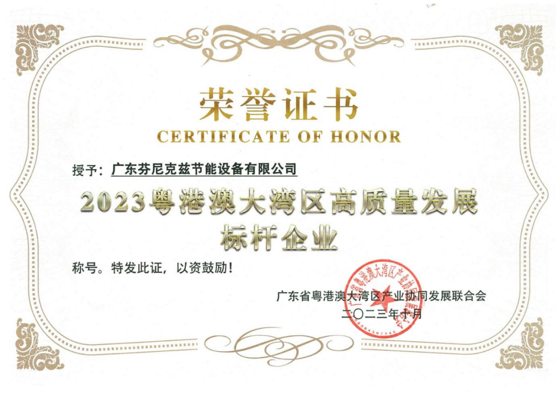 2023年粵港澳大灣區高質量發展標桿企業的評選結果正式公布,憑借其卓越的品牌影響力和行業領導地位,芬尼脫穎而出,成為本次評選的佼佼者,這也是對芬尼長期以來堅持高質量發展的肯定與褒獎。